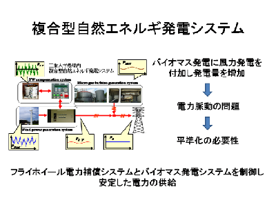 本研究は,小規模発電システムにおいて,これら既存のバイオマス燃料を用いた発電システムに風力発電機およびフライホイールを用いた電力貯蔵システムを組み合わせることにより,変動の大きい風力発電システムの発電電力を平準化し,安定な電力を供給することを目的としている。